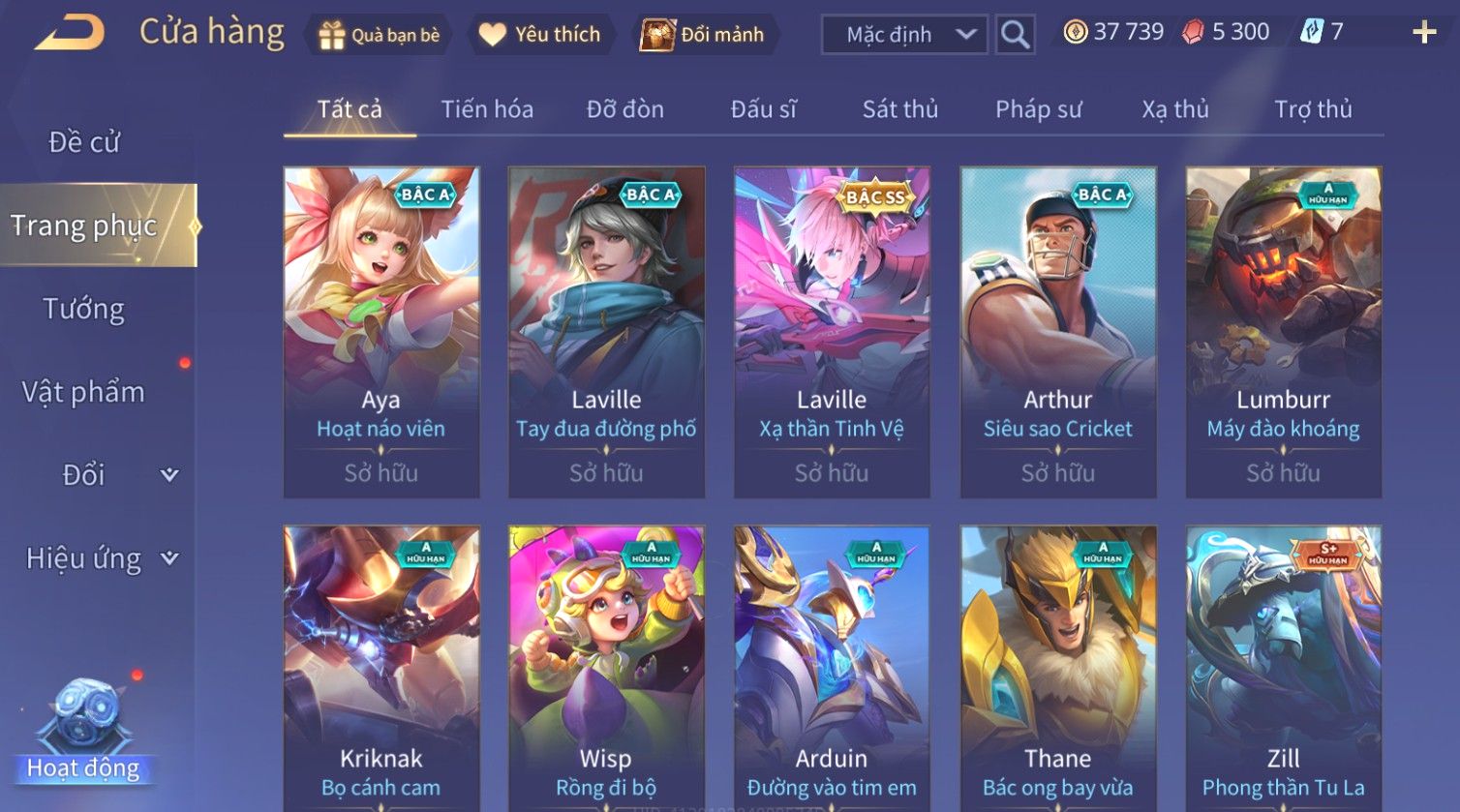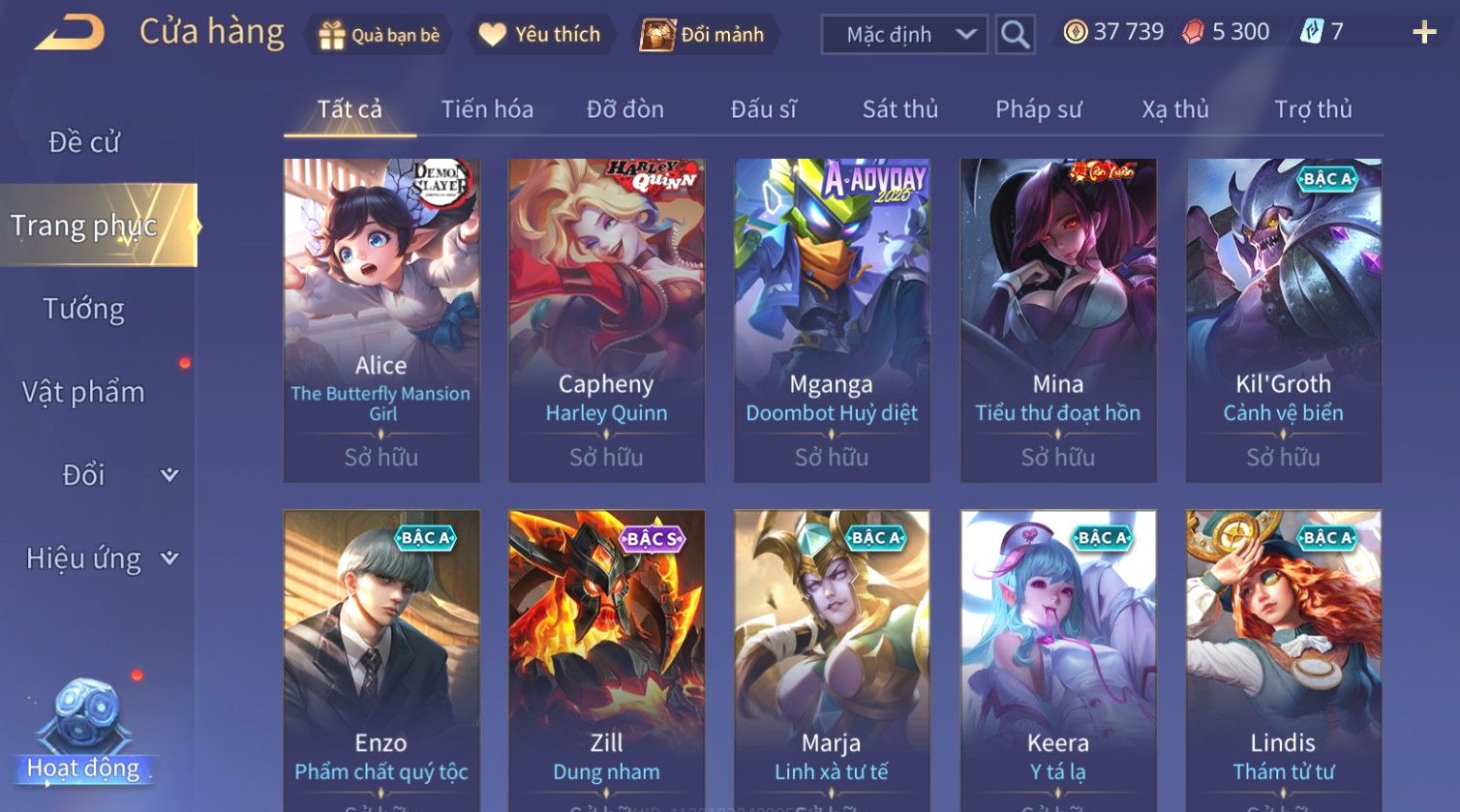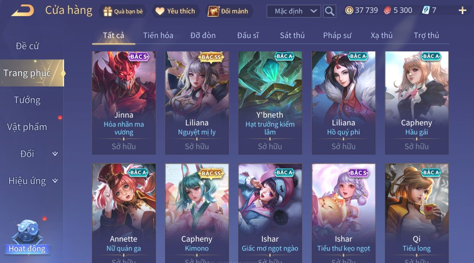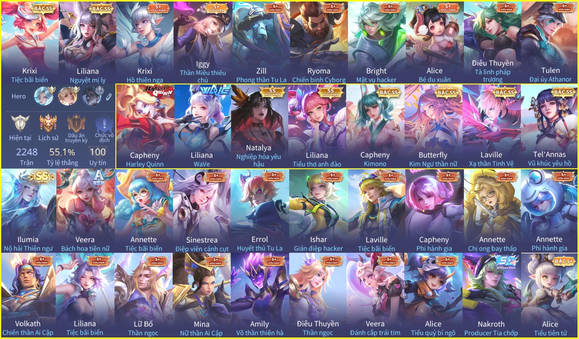 Nổi bật: Skin: Capheny Harley Quinn×Liliana WaVe×Natalya Nghiệp Hỏa Yêu Hậu×Liliana Tiểu Thơ Anh Đào×Capheny Kimono×Butterfly Kim Ngư Thần Nữ×Laville Xạ thần Tinh Vệ×Tel'Annas Vũ Khúc Yêu Hồ×Ilumia Nộ Hải Thiên Ngư×