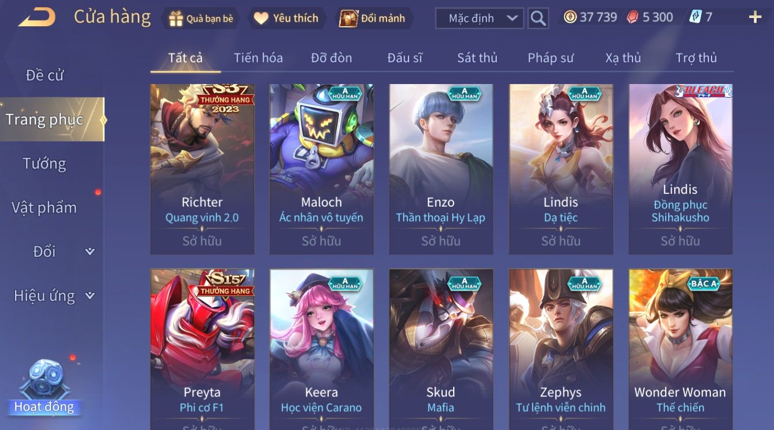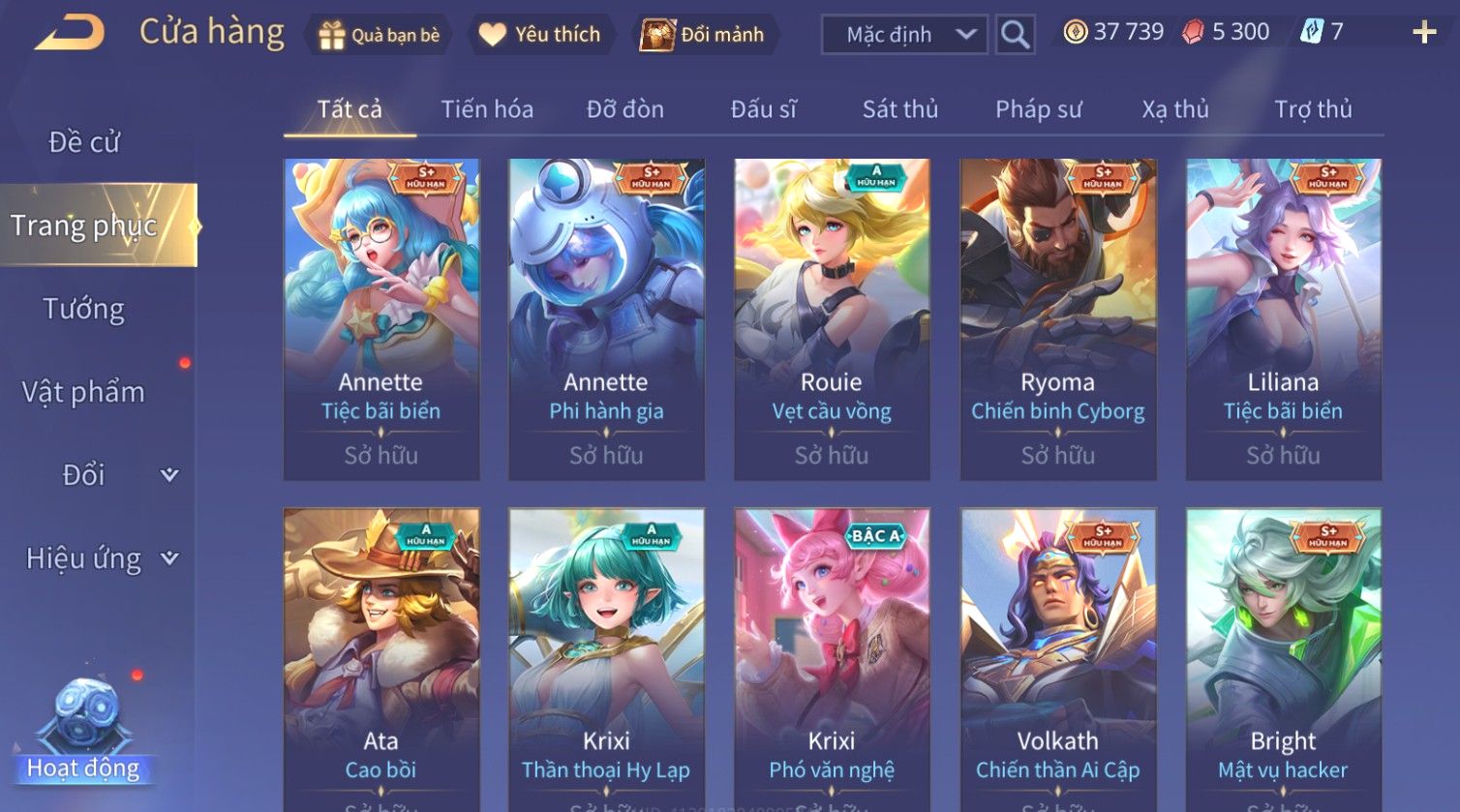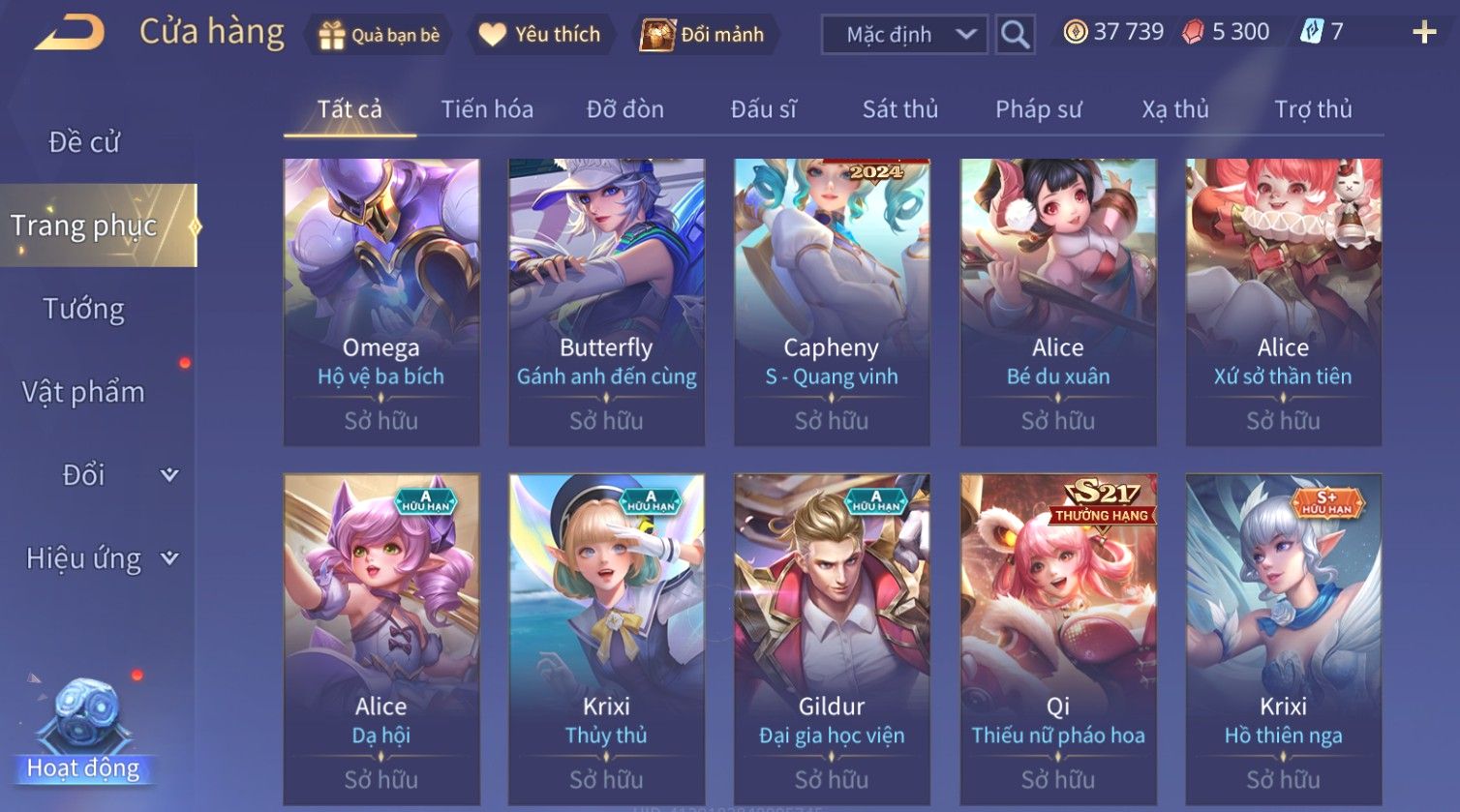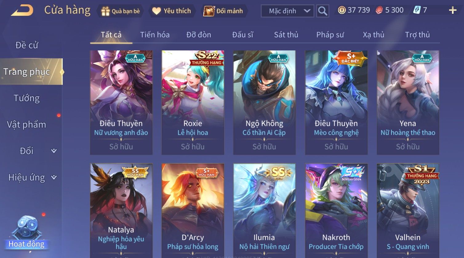 Nổi bật: Skin: Capheny Harley Quinn×Liliana WaVe×Natalya Nghiệp Hỏa Yêu Hậu×Liliana Tiểu Thơ Anh Đào×Capheny Kimono×Butterfly Kim Ngư Thần Nữ×Laville Xạ thần Tinh Vệ×Tel'Annas Vũ Khúc Yêu Hồ×Ilumia Nộ Hải Thiên Ngư×