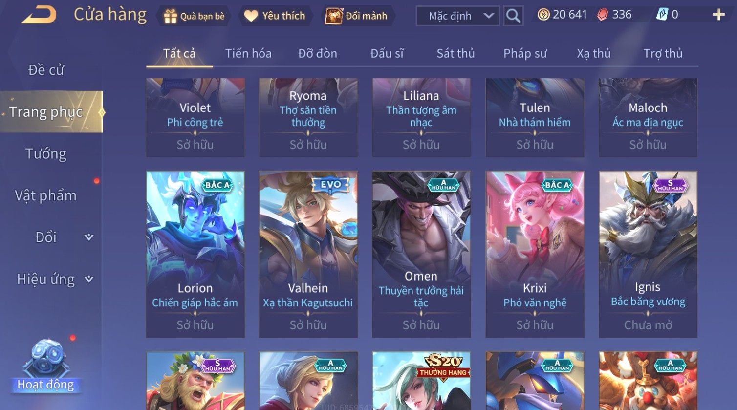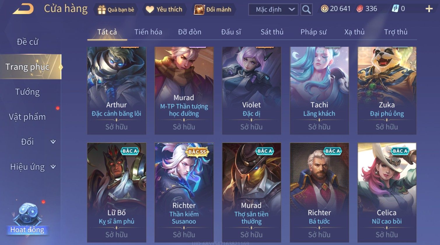 Nổi bật: Skin: Airi Kiemono×Richter Thần Kiếm Susanoo×Quilen Tà Linh Ma Đao×Zill Cựu Thần Thiên Hà×