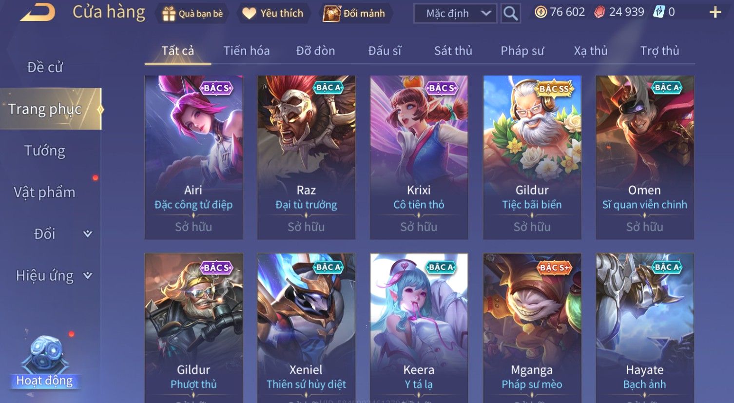 Nổi bật: Skin: Violet Thần Long Tỷ Tỷ×Lauriel Thánh Quang Sứ×Gildur Tiệc Bãi Biển×Aya Mc Sóc Nhỏ×Aoi Hoàng Kim Công Chúa×Full Ngọc, Nhiều Skin SS Đẹp