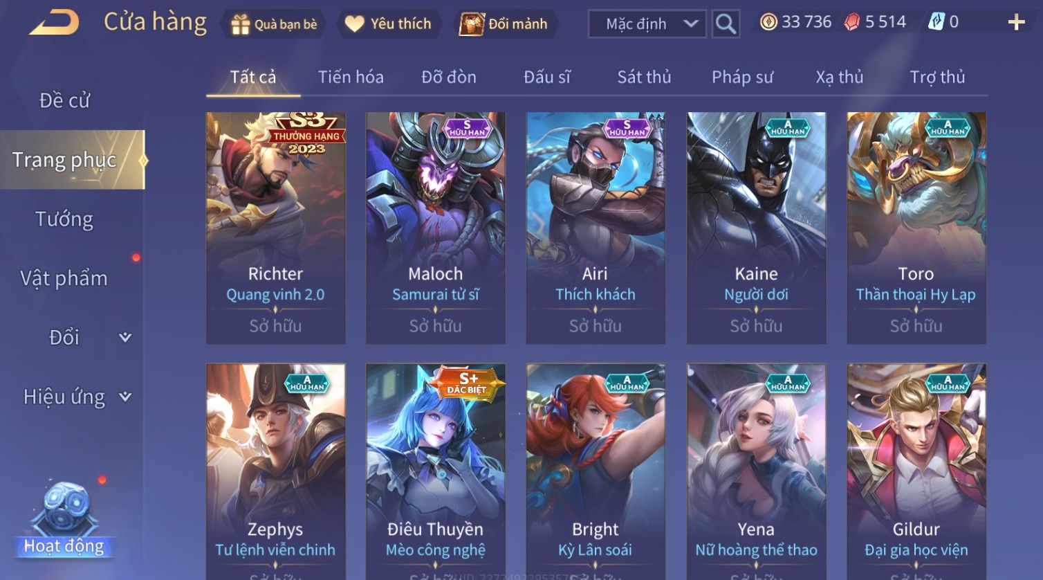 Nổi bật: Full Ngọc, Nhiều Skin SS Đẹp