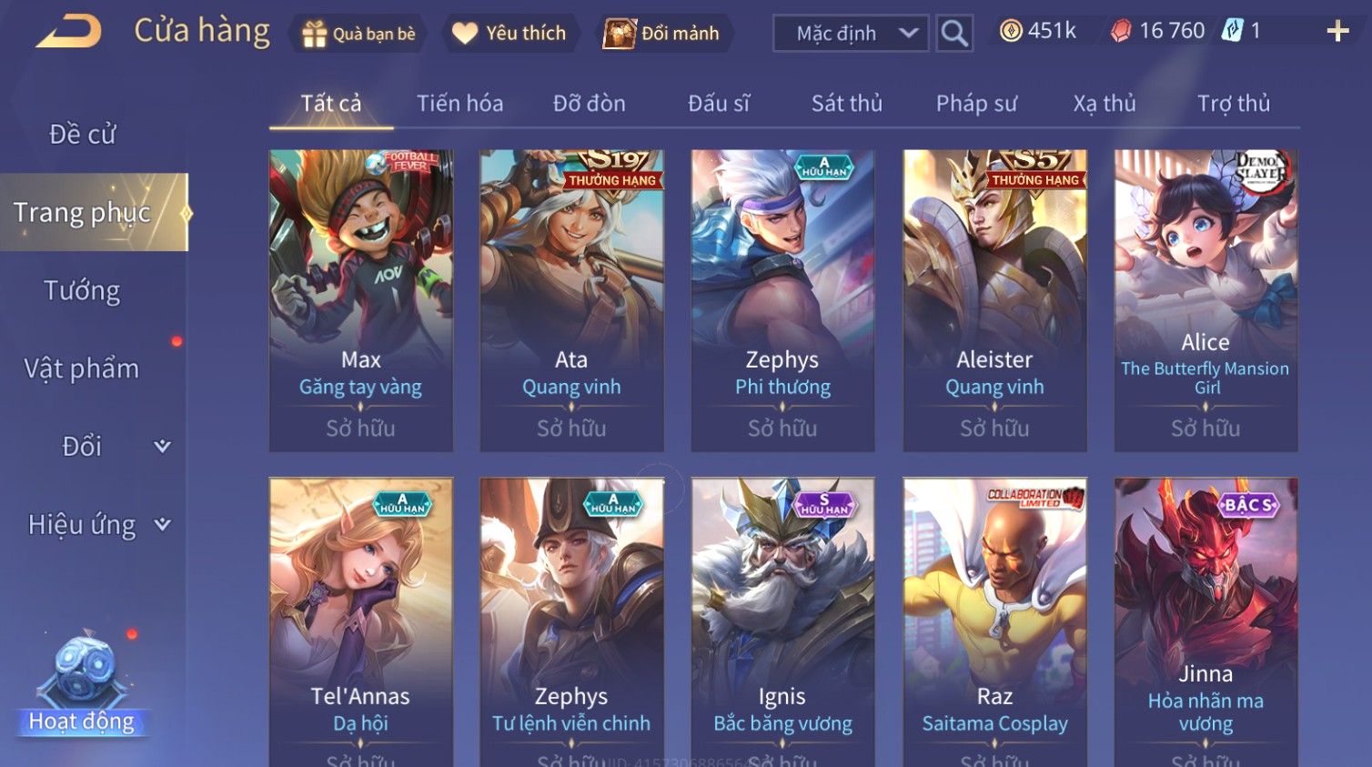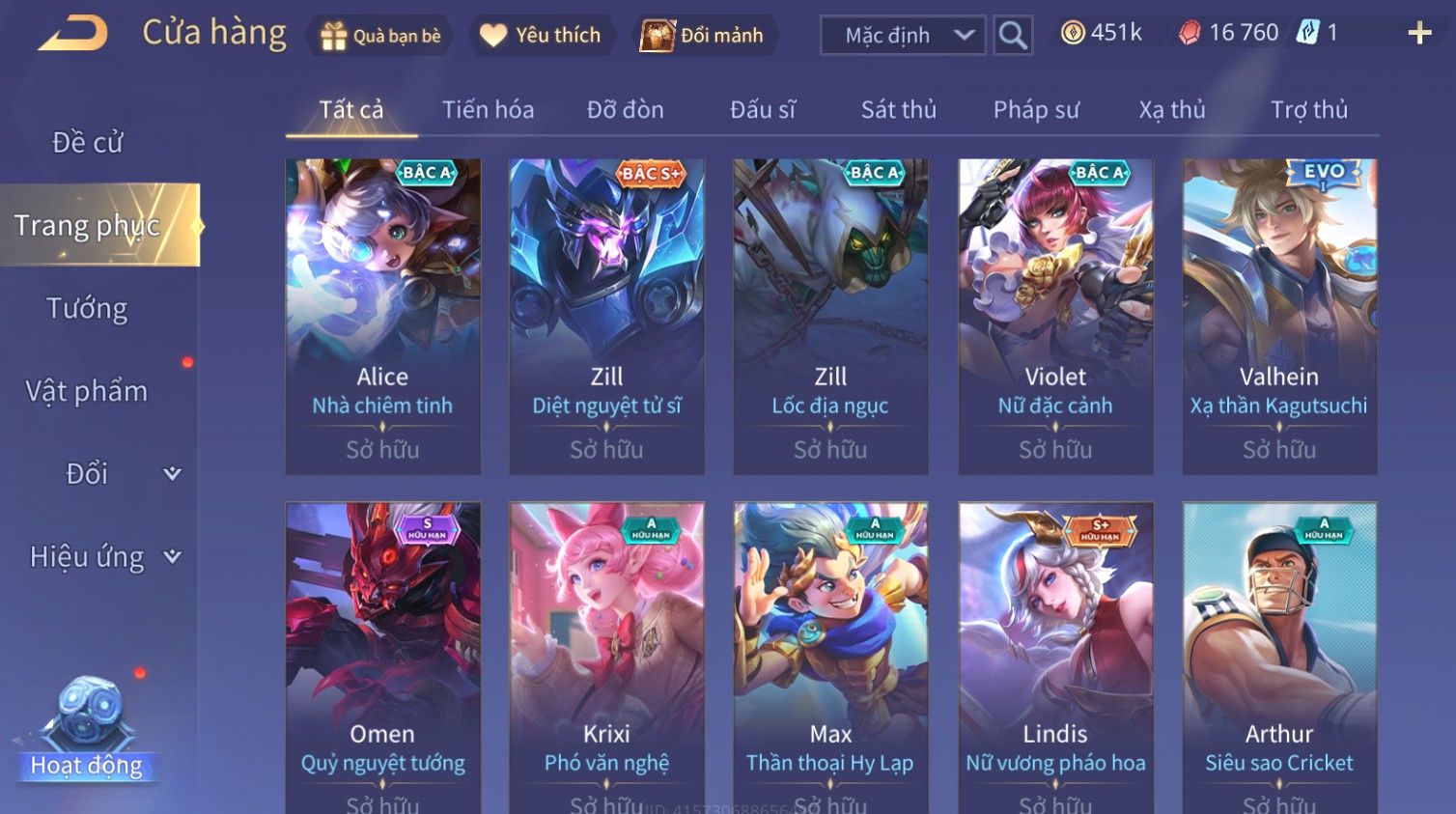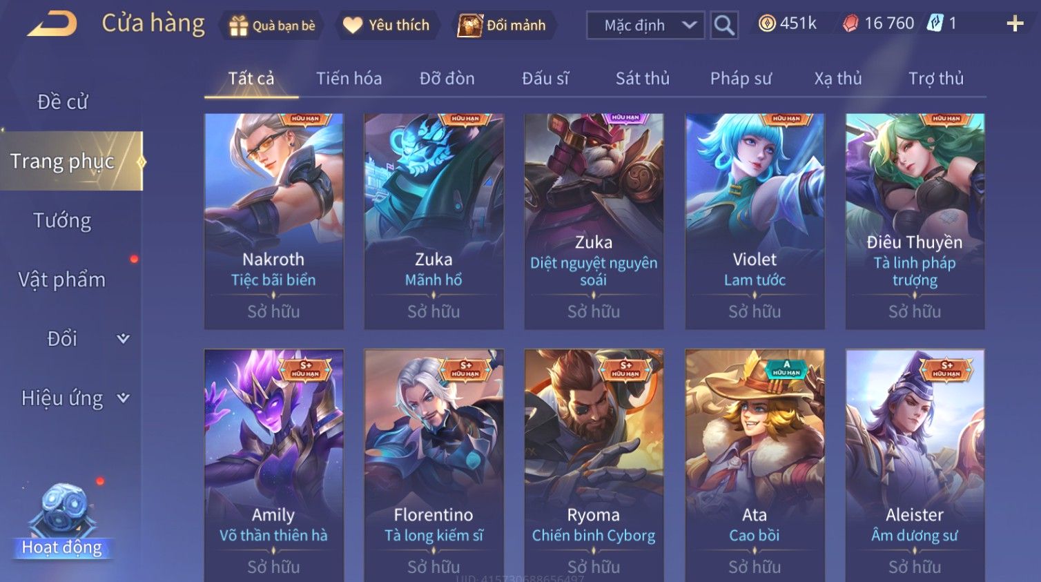 Trạng Thái: Nick có SĐT or Gmail Của Shop( Có Thể Thay Đổi)