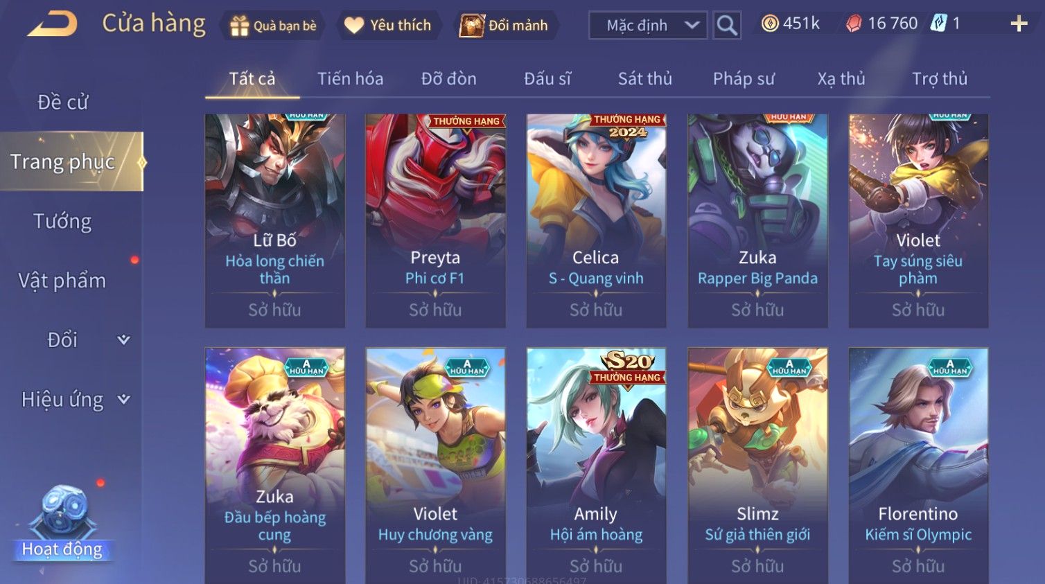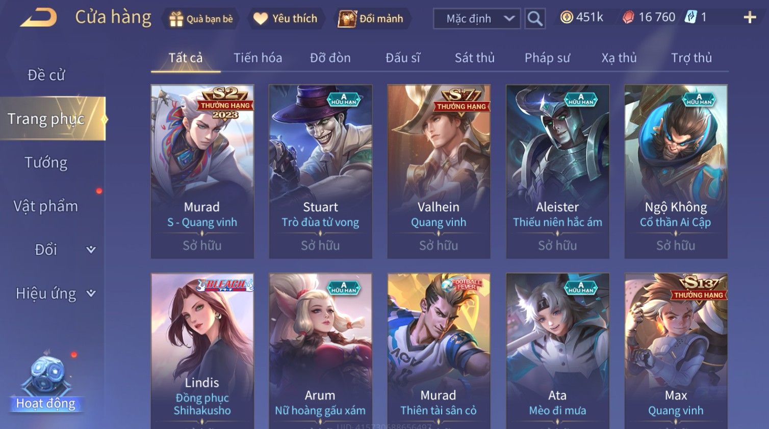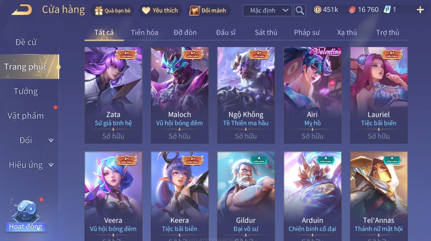 Trạng Thái: Nick có SĐT or Gmail Của Shop( Có Thể Thay Đổi)