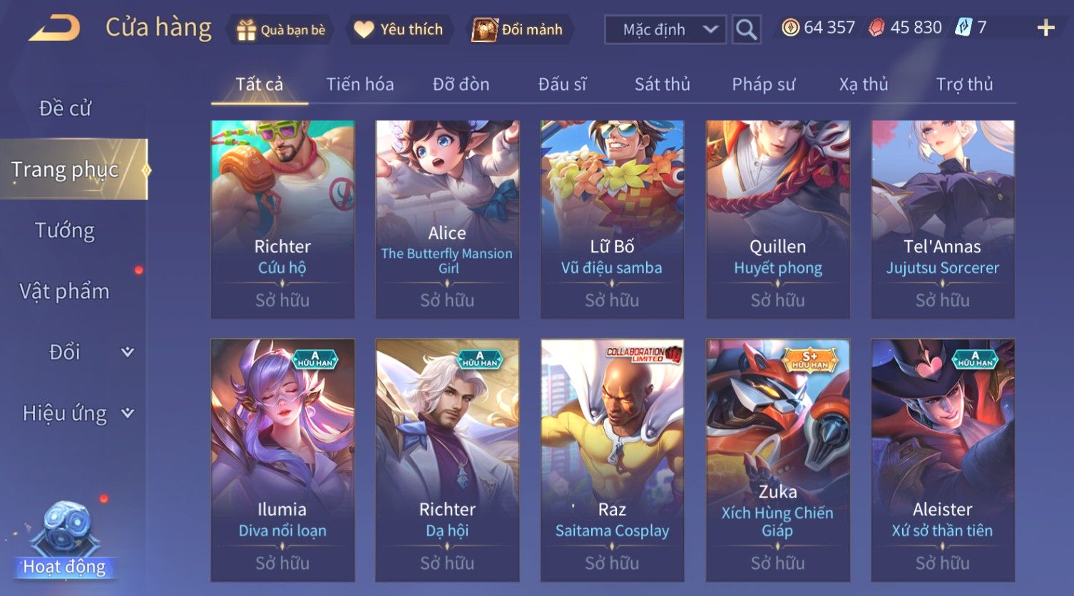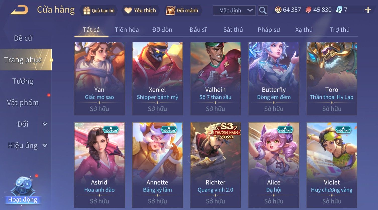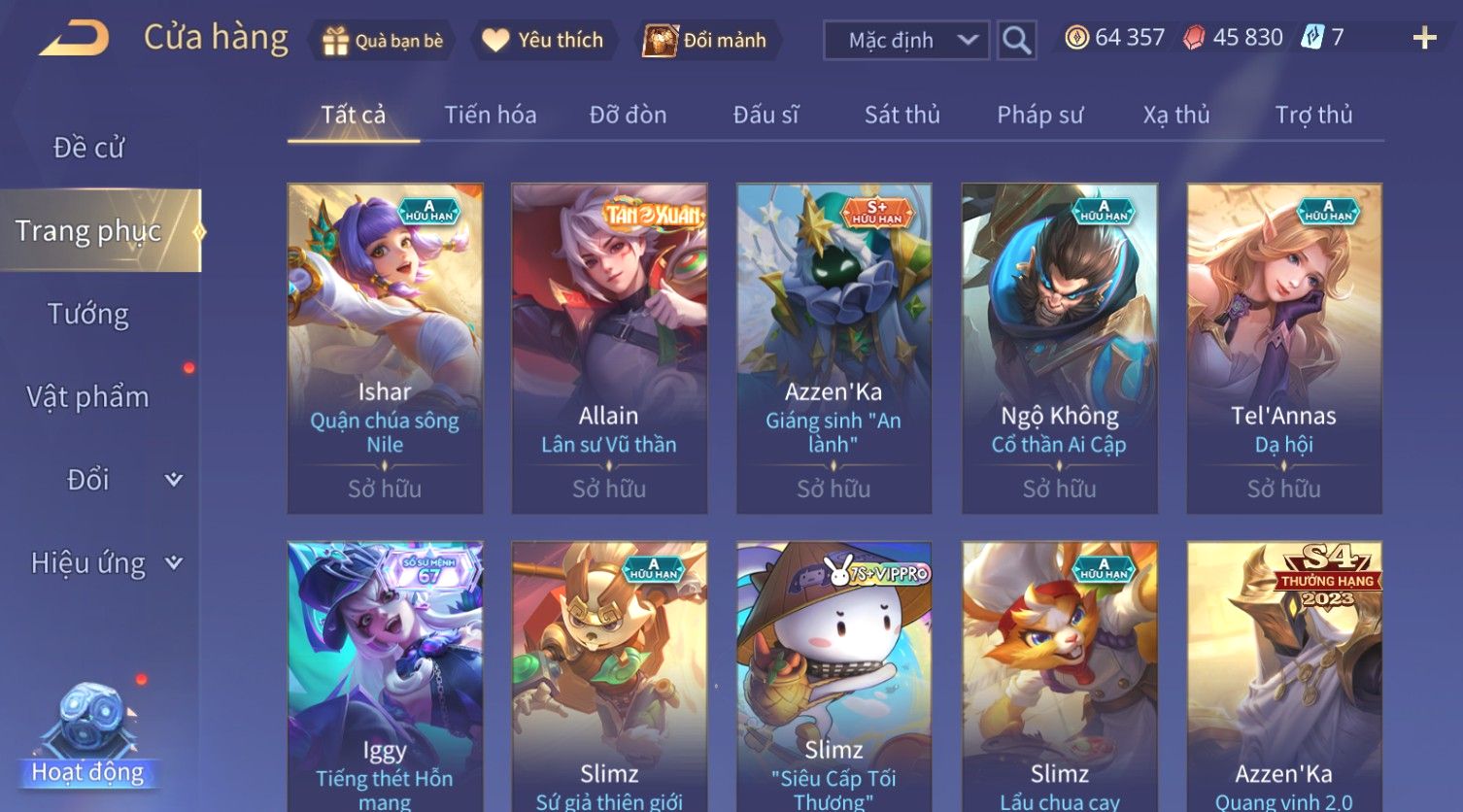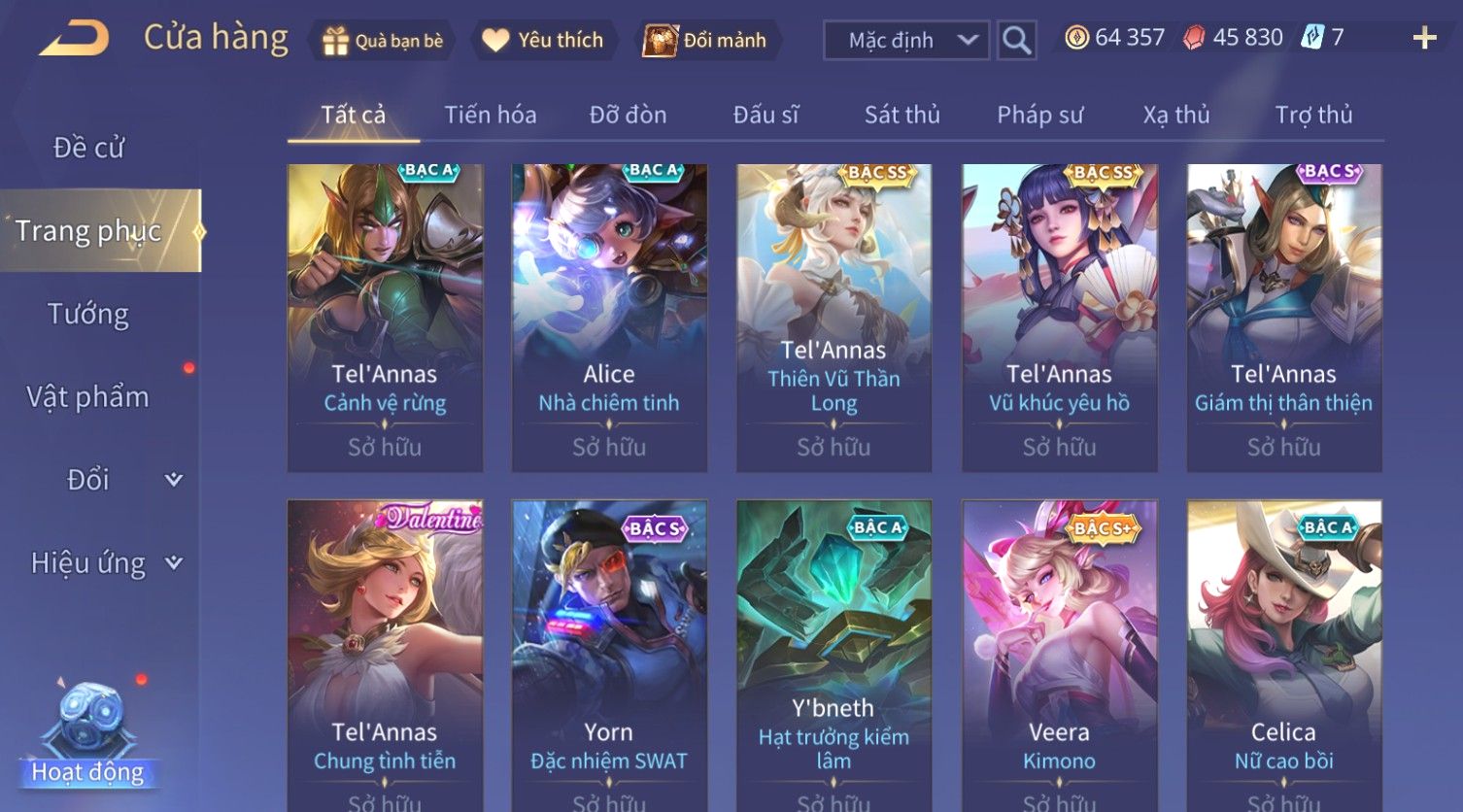 Nổi bật: Skin: Tel'Annas Thiên Vũ Thần Long×Tel'Annas Vũ Khúc Yêu Hồ×Violet Tiệc Bãi Biển×Điêu Thuyền Tiệc Bãi Biển×
