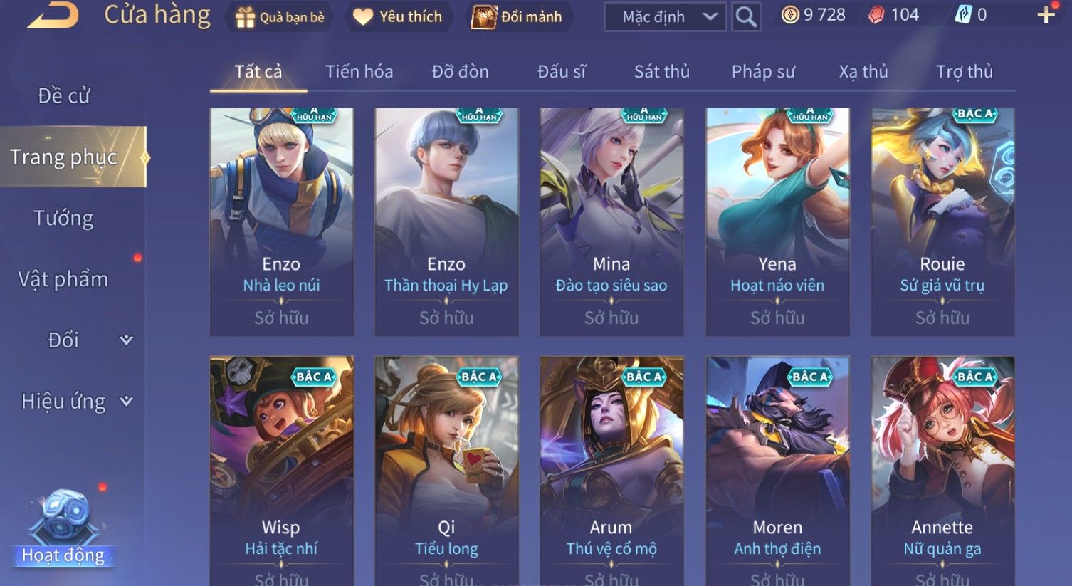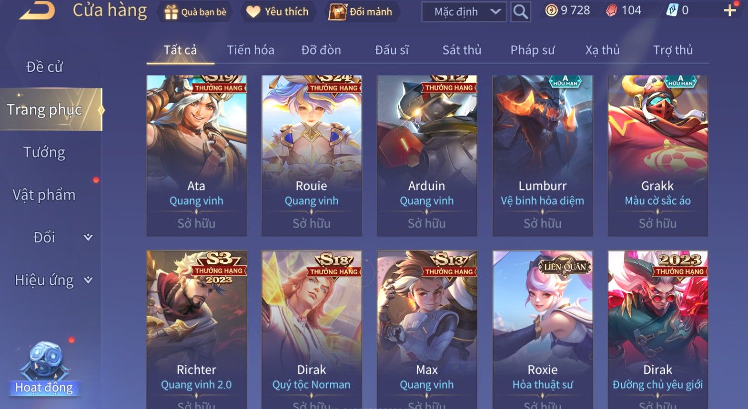 Nổi bật: Skin: Quillen Đặc Công Mãng Xà×Valhein Vũ Khí Tối Thượng×Full Ngọc, Nhiều Skin SS Đẹp