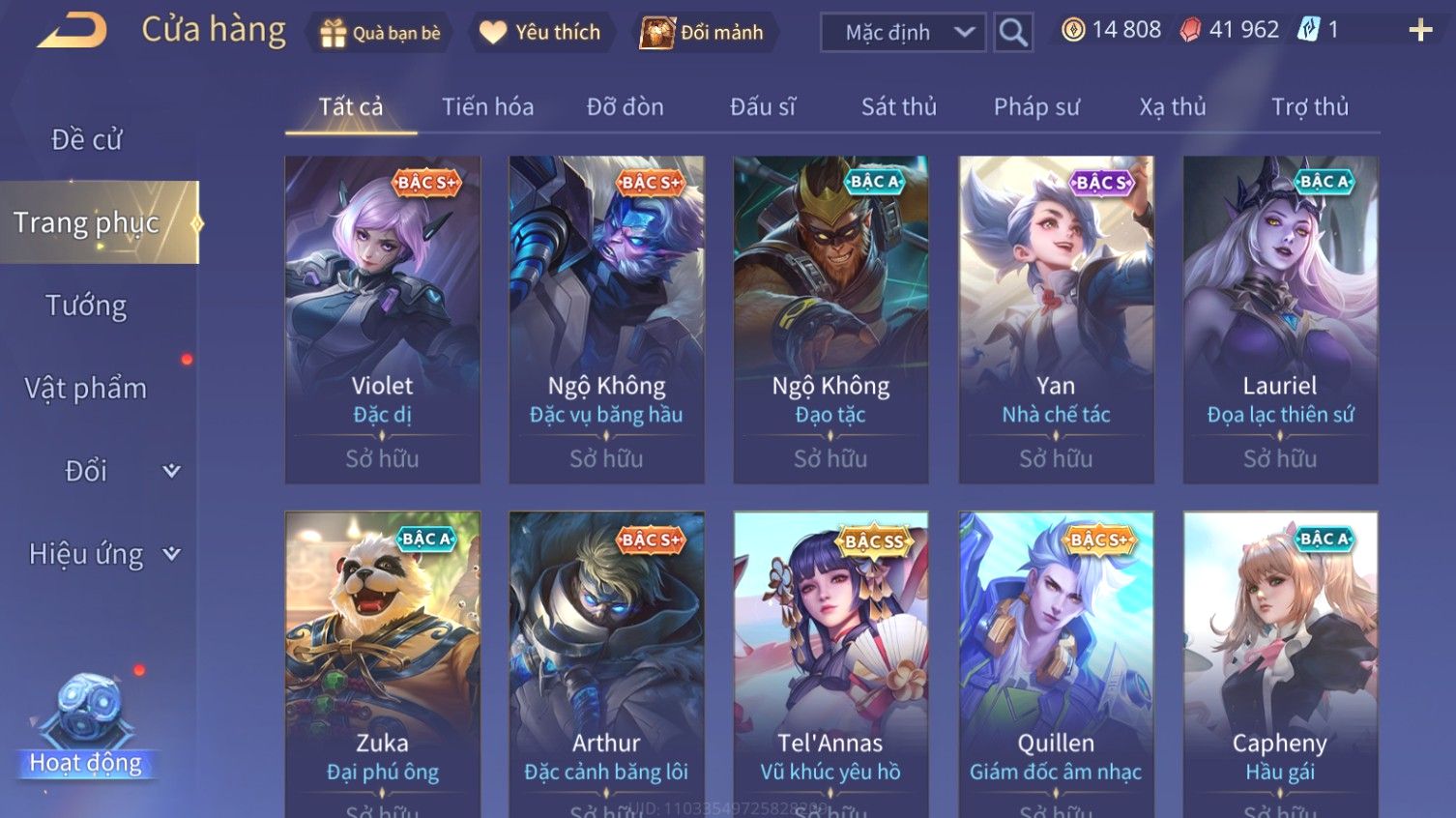 Nổi bật: Skin: Flo Kỷ Nguyên Hổ Phách×Florentino Giám Sát Tinh Hệ×Raz Gon×Tel'Annas Vũ Khúc Yêu Hồ×Liliana Nguyệt Mị Ly×Gildur Tiệc Bãi Biển×Krixi Tiệc Bãi Biển×Elsu Guitar Tình Ái×Full Ngọc, Nhiều Skin SS Đẹp