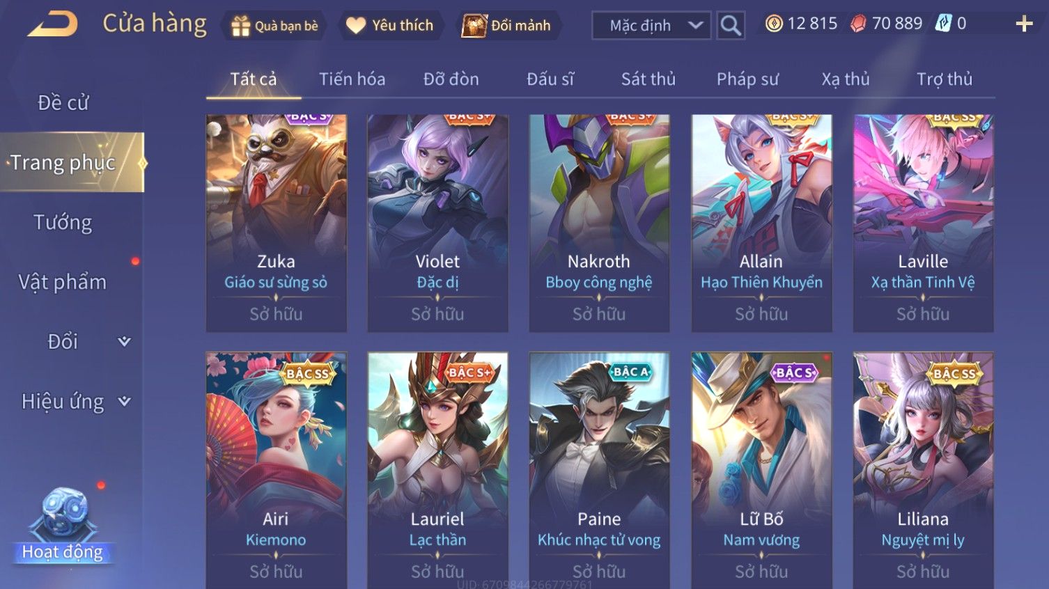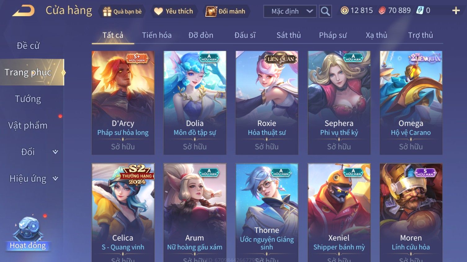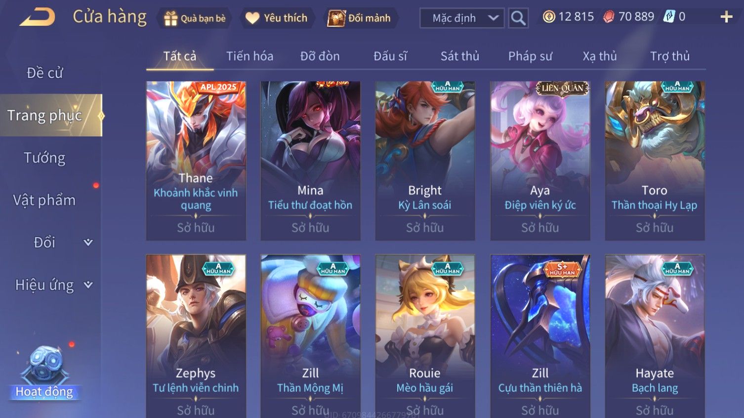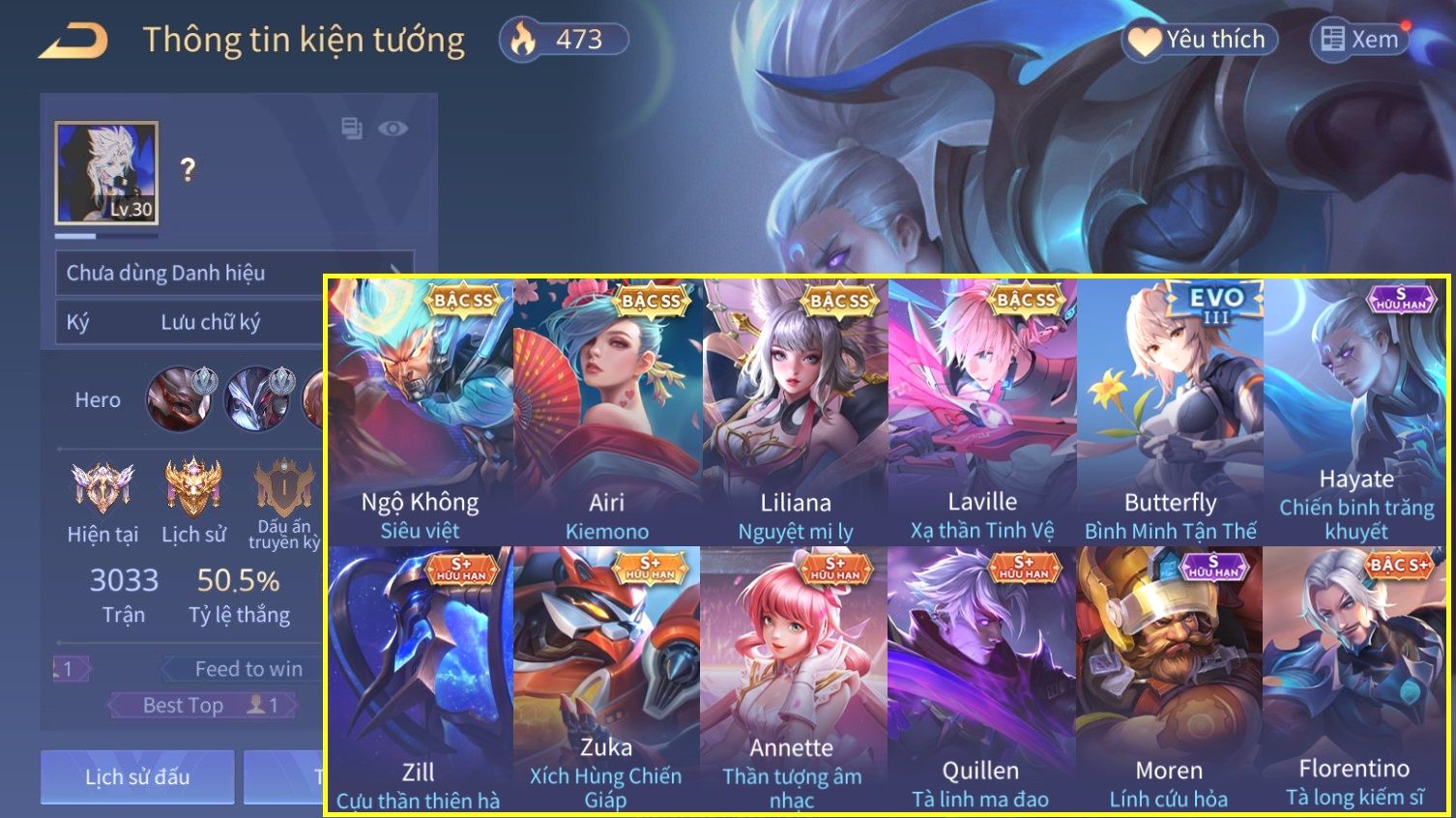 Nổi bật: Skin: Ngộ Không Siêu Việt×Airi Kiemono×Liliana Nguyệt Mị Ly×Laville Xạ thần Tinh Vệ×Hayate Chiến Binh Trăng Khuyết×Moren Lính Cứu Hỏa×Full Ngọc, Nhiều Skin SS Đẹp
