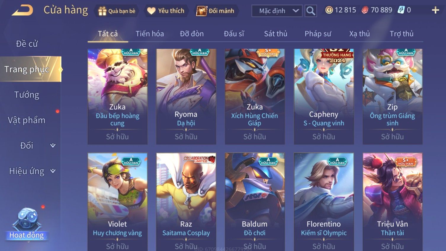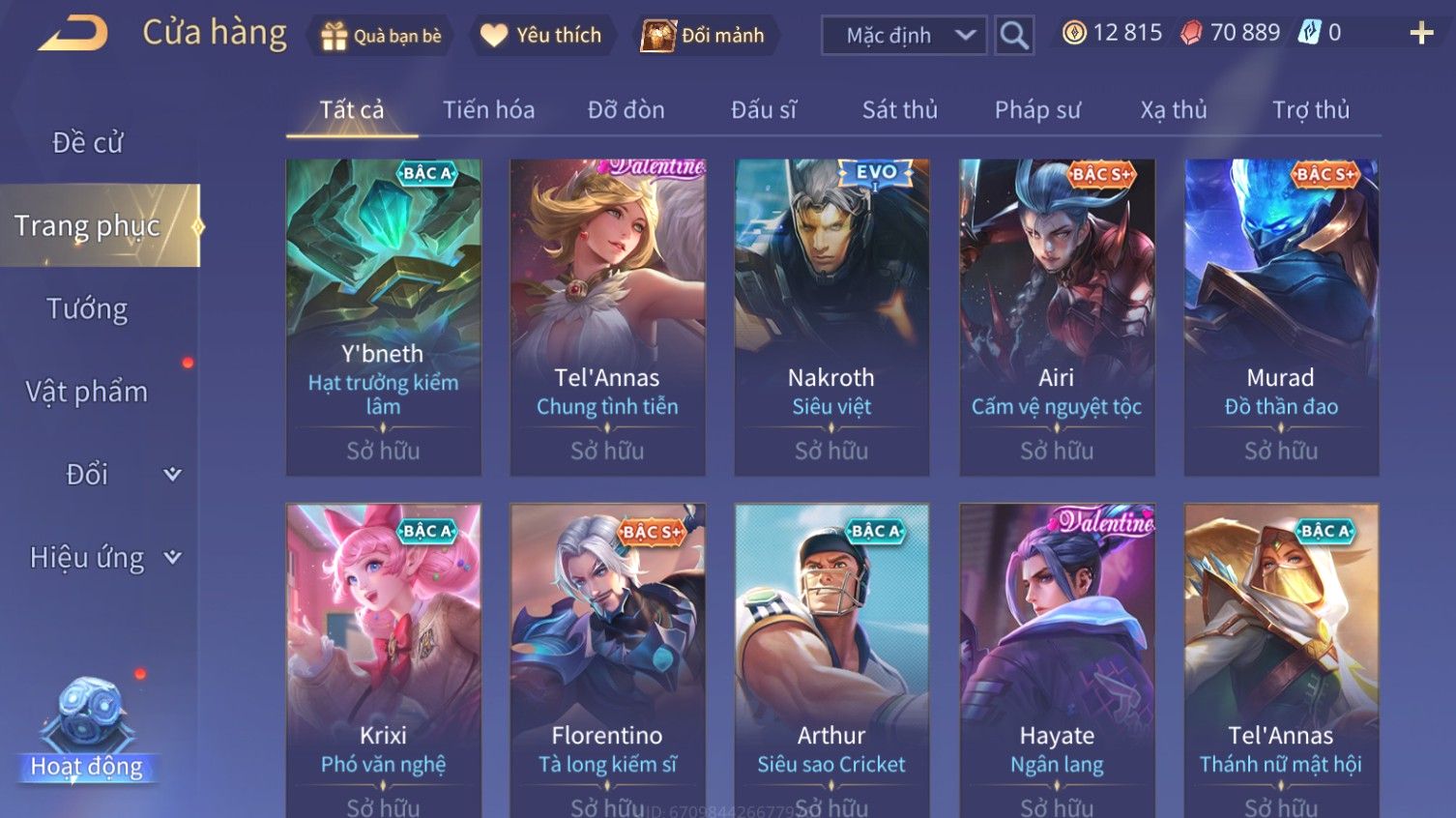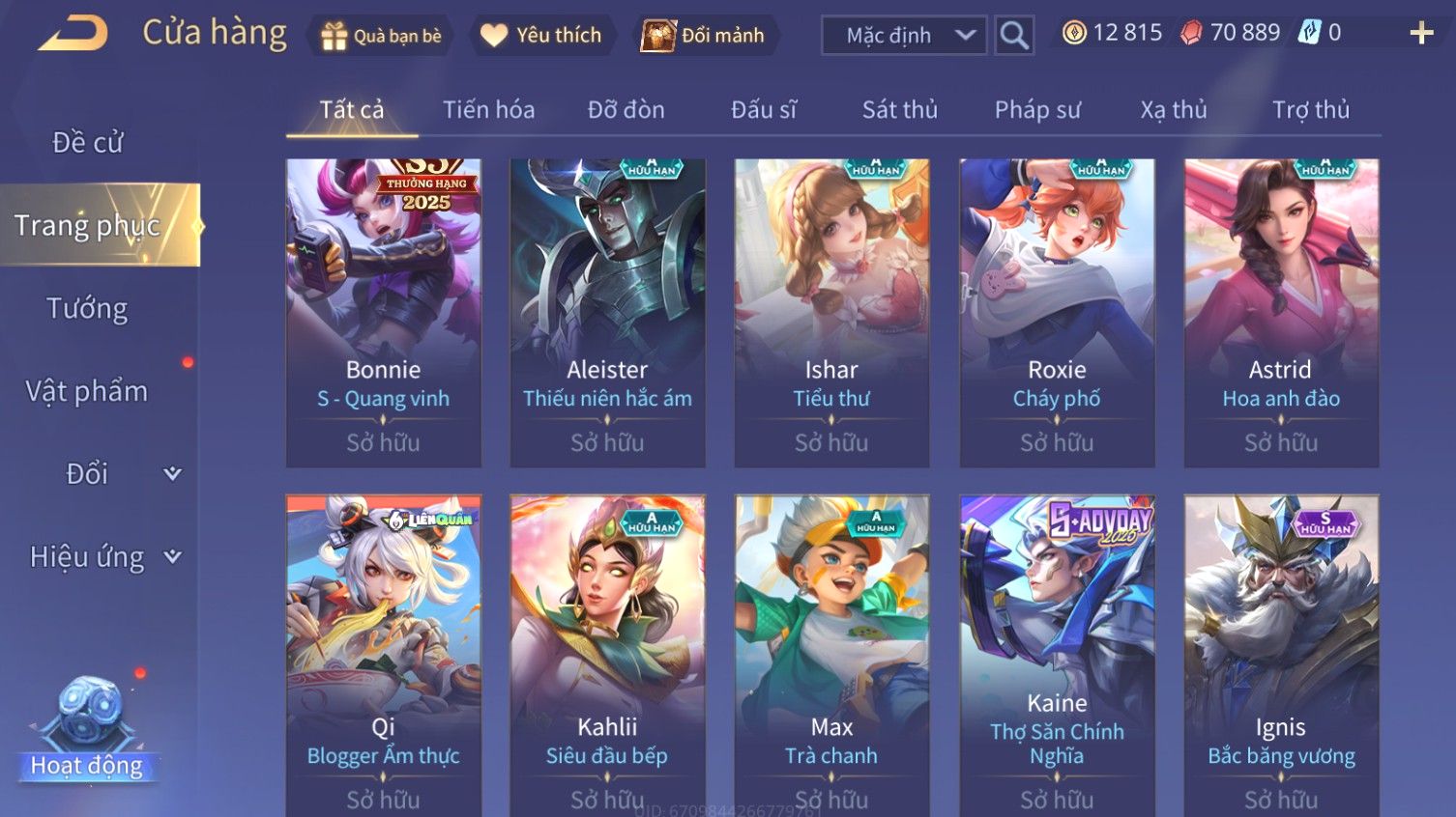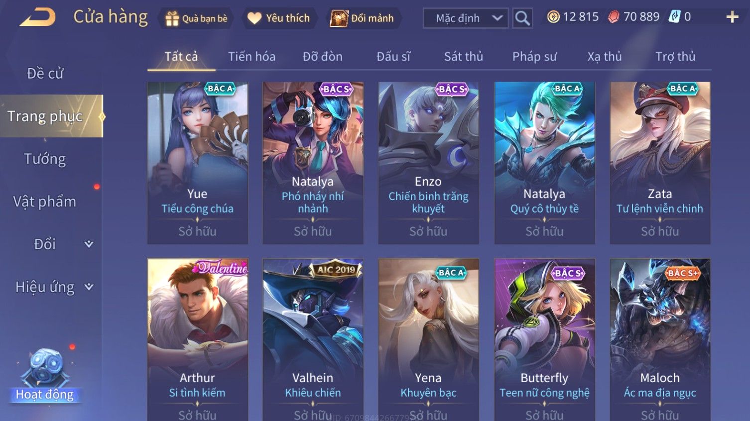 Nổi bật: Skin: Ngộ Không Siêu Việt×Airi Kiemono×Liliana Nguyệt Mị Ly×Laville Xạ thần Tinh Vệ×Hayate Chiến Binh Trăng Khuyết×Moren Lính Cứu Hỏa×Full Ngọc, Nhiều Skin SS Đẹp