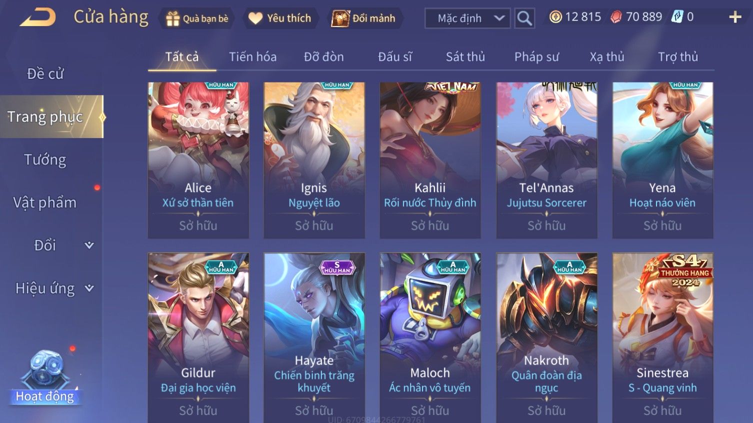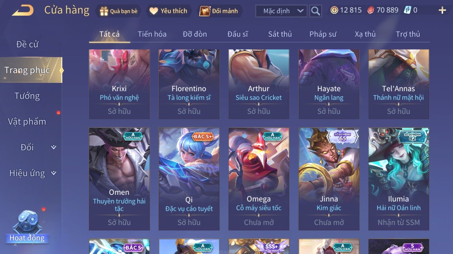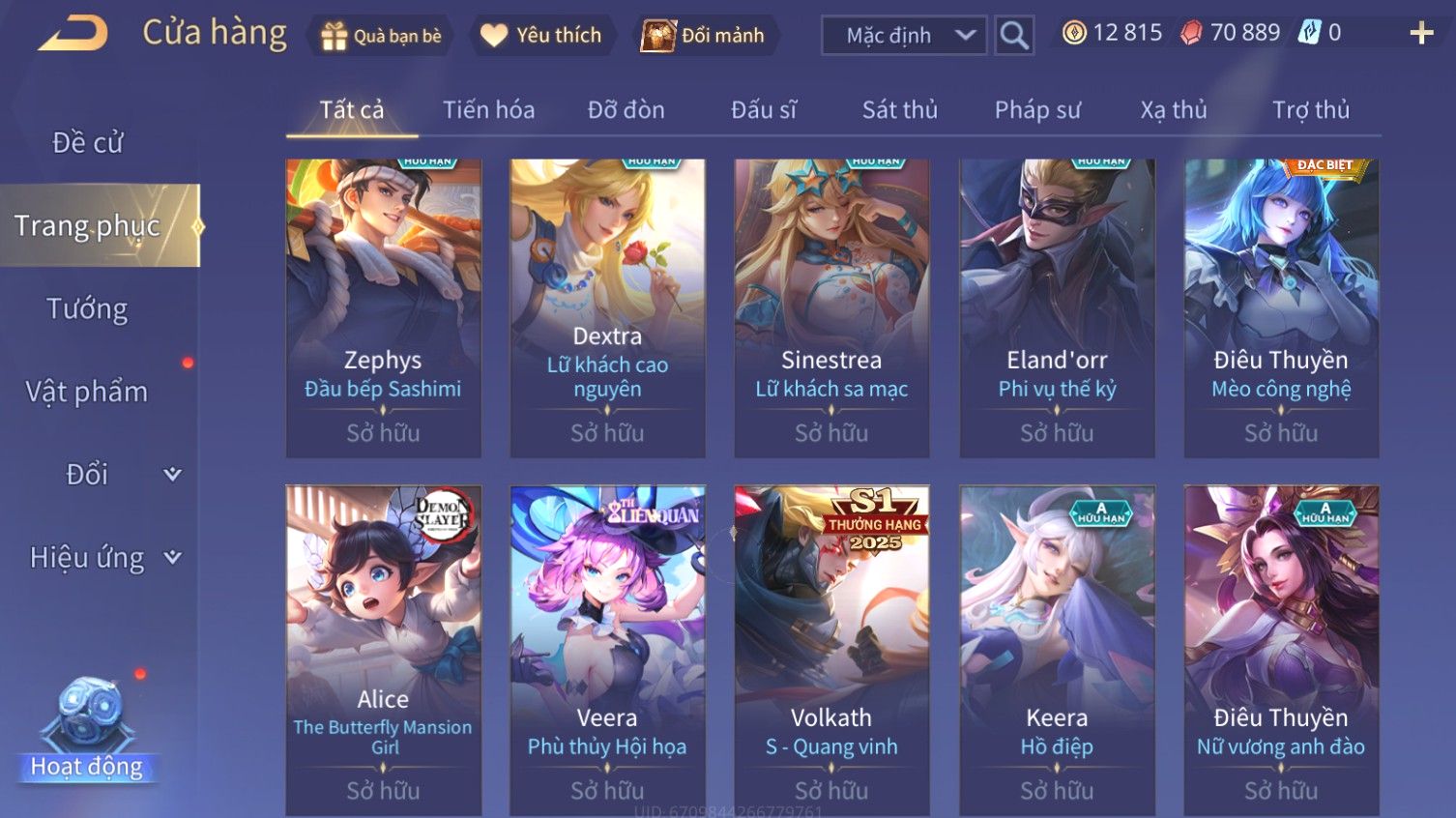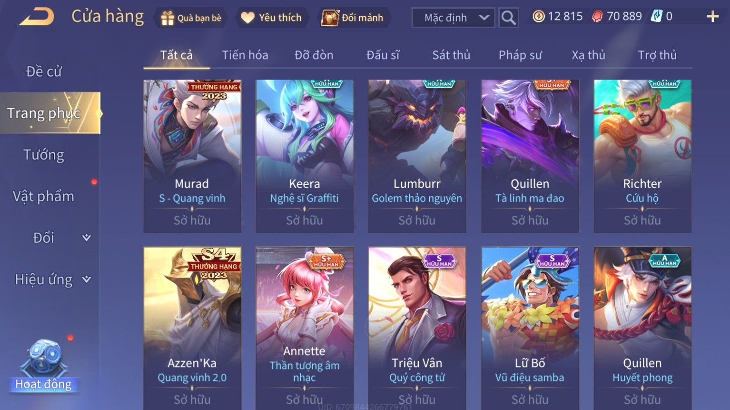 Nổi bật: Skin: Ngộ Không Siêu Việt×Airi Kiemono×Liliana Nguyệt Mị Ly×Laville Xạ thần Tinh Vệ×Hayate Chiến Binh Trăng Khuyết×Moren Lính Cứu Hỏa×Full Ngọc, Nhiều Skin SS Đẹp