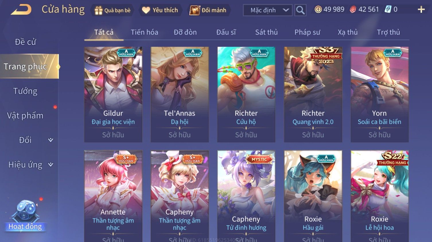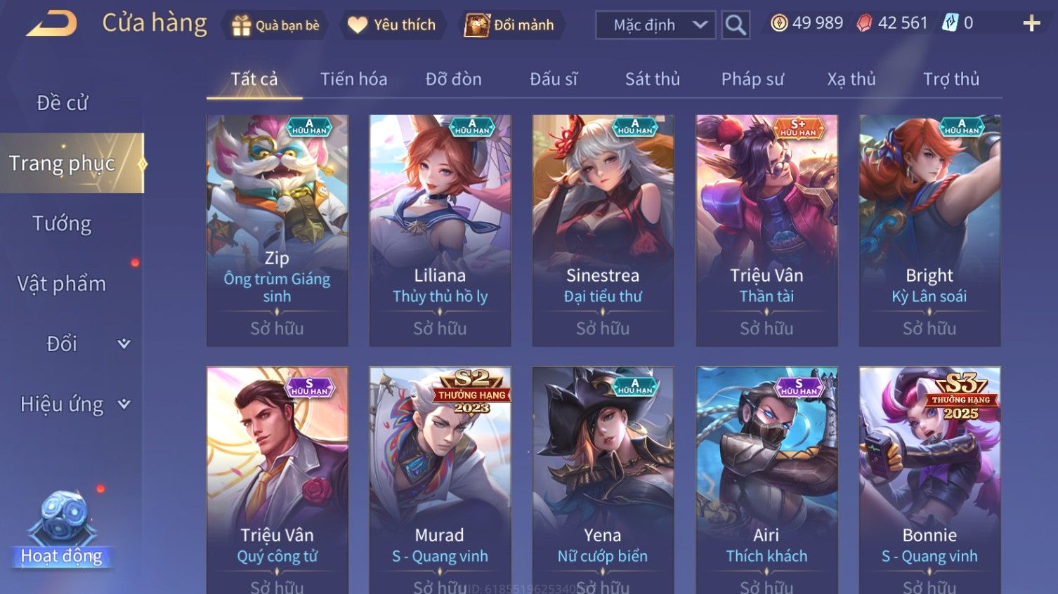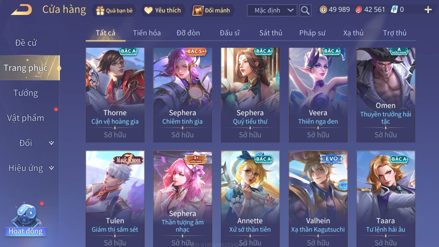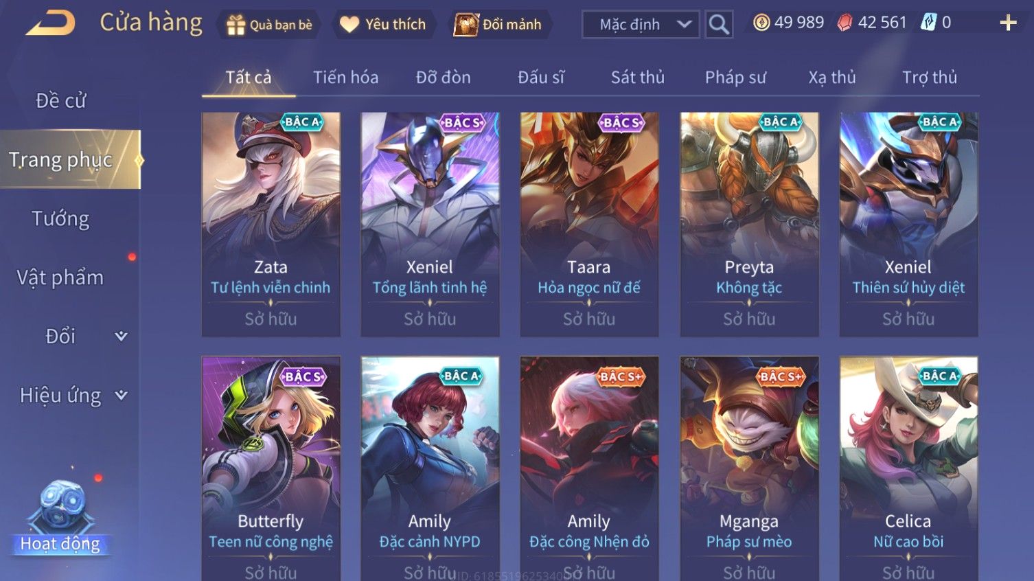 Nổi bật: Skin: Airi Bạch Kiemono×Violet Thần Long Tỷ Tỷ×Capheny Tử Đinh Hương×Butterfly Nữ Quái Nổi Loạn×Tachi Đao Khách Vô Tình×Sephera Bách Nhạn Ngân LinhFull Ngọc, Nhiều Skin SS Đẹp