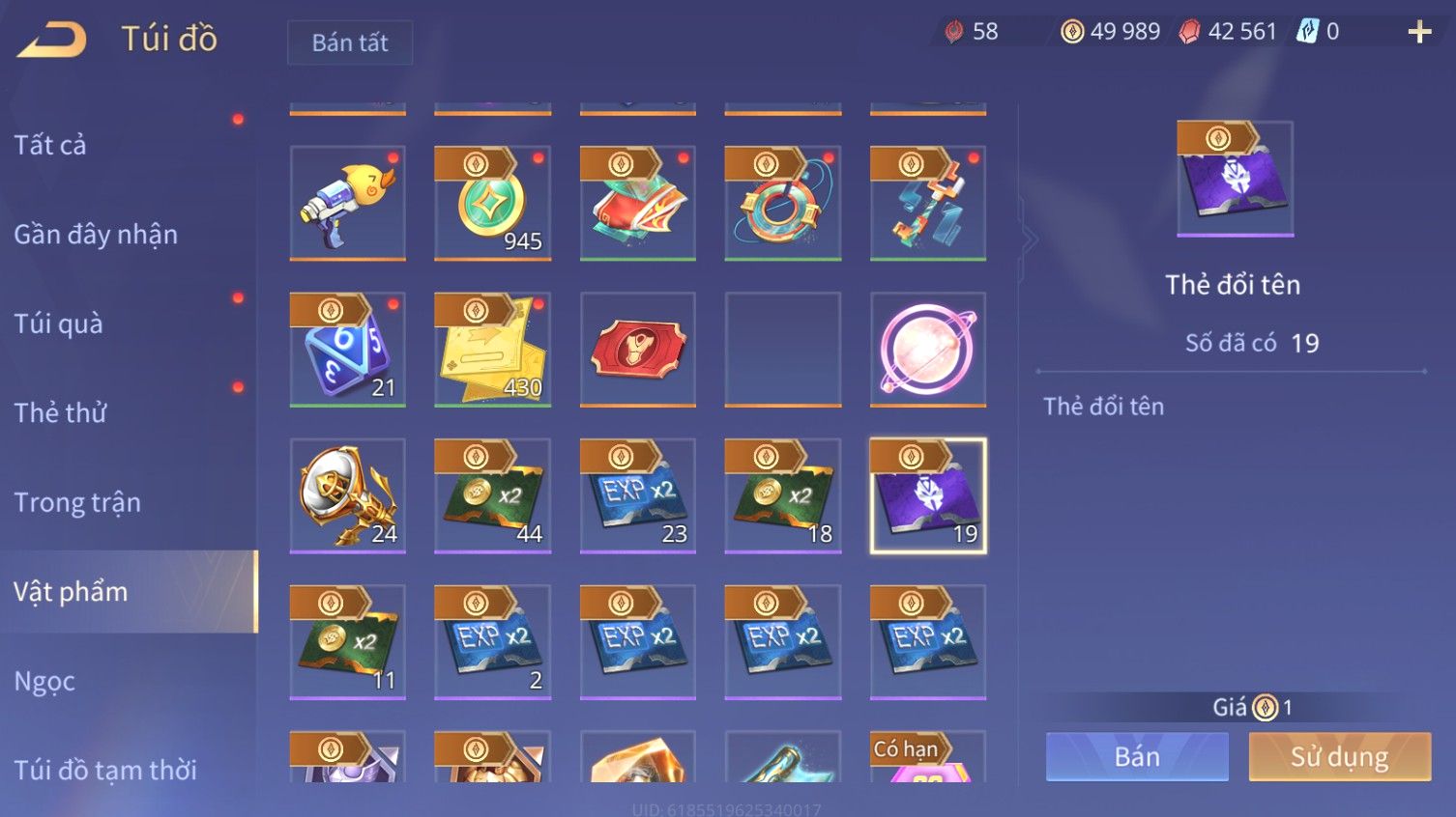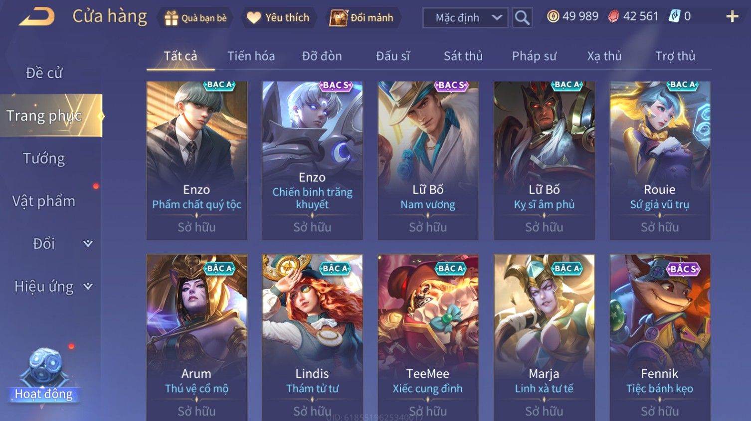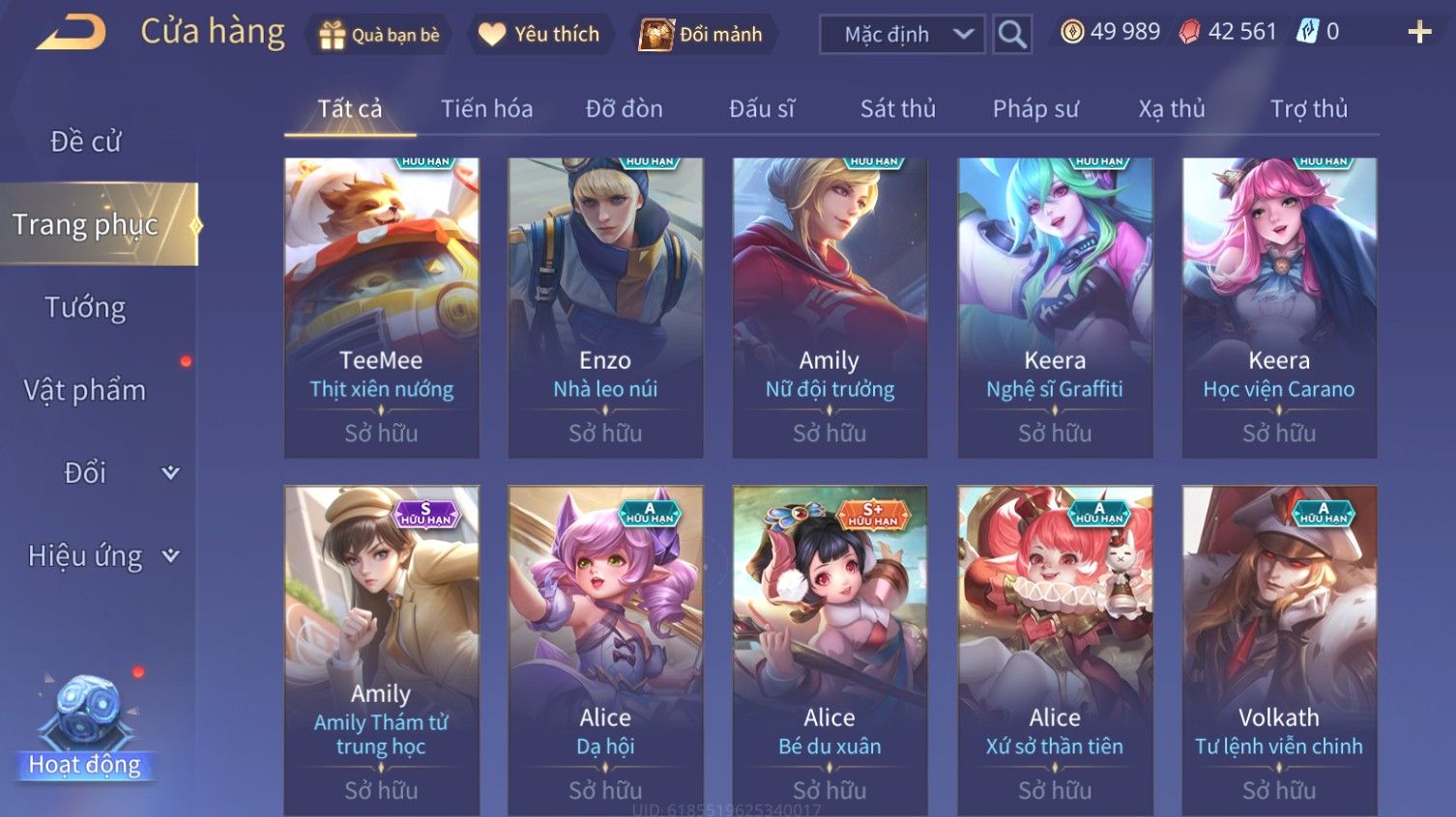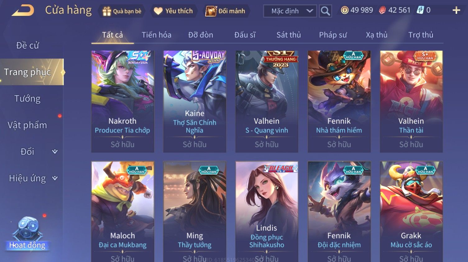 Nổi bật: Skin: Airi Bạch Kiemono×Violet Thần Long Tỷ Tỷ×Capheny Tử Đinh Hương×Butterfly Nữ Quái Nổi Loạn×Tachi Đao Khách Vô Tình×Sephera Bách Nhạn Ngân LinhFull Ngọc, Nhiều Skin SS Đẹp